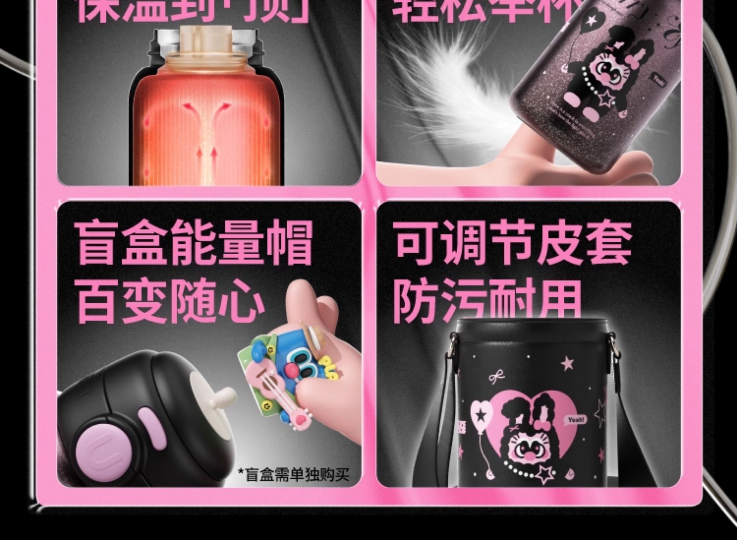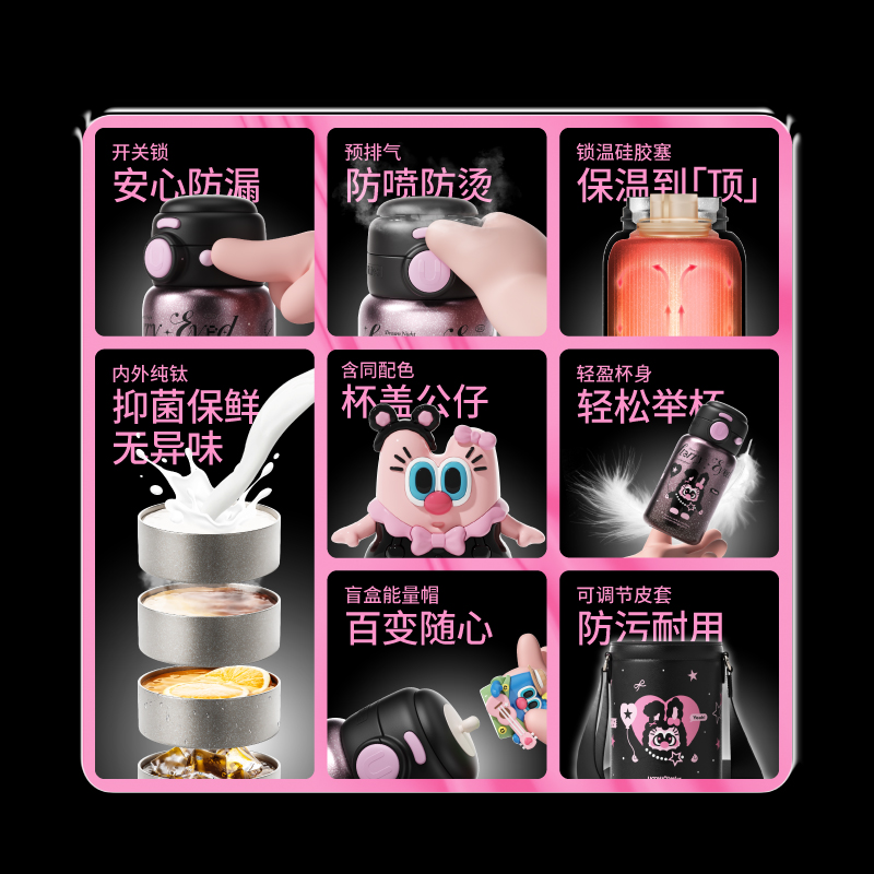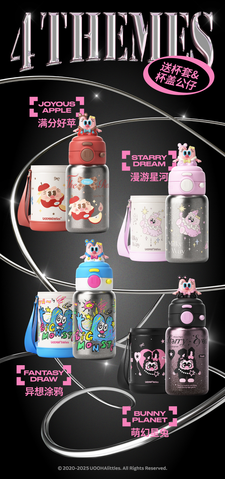 漫游星河-粉色500ml, 萌幻星兔-黑色500ml, 异想涂鸦-蓝色500ml, 满分好苹-红色500ml