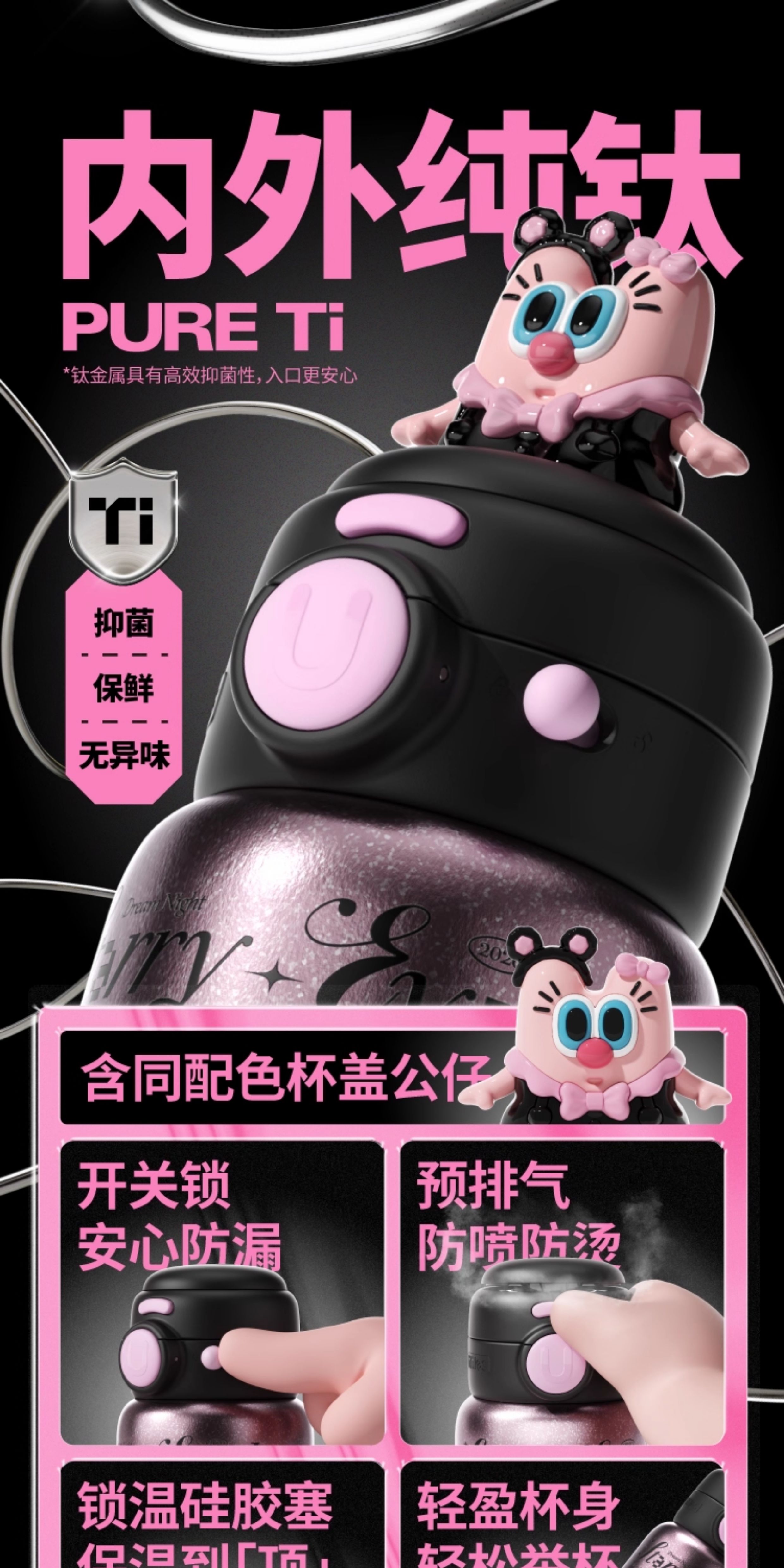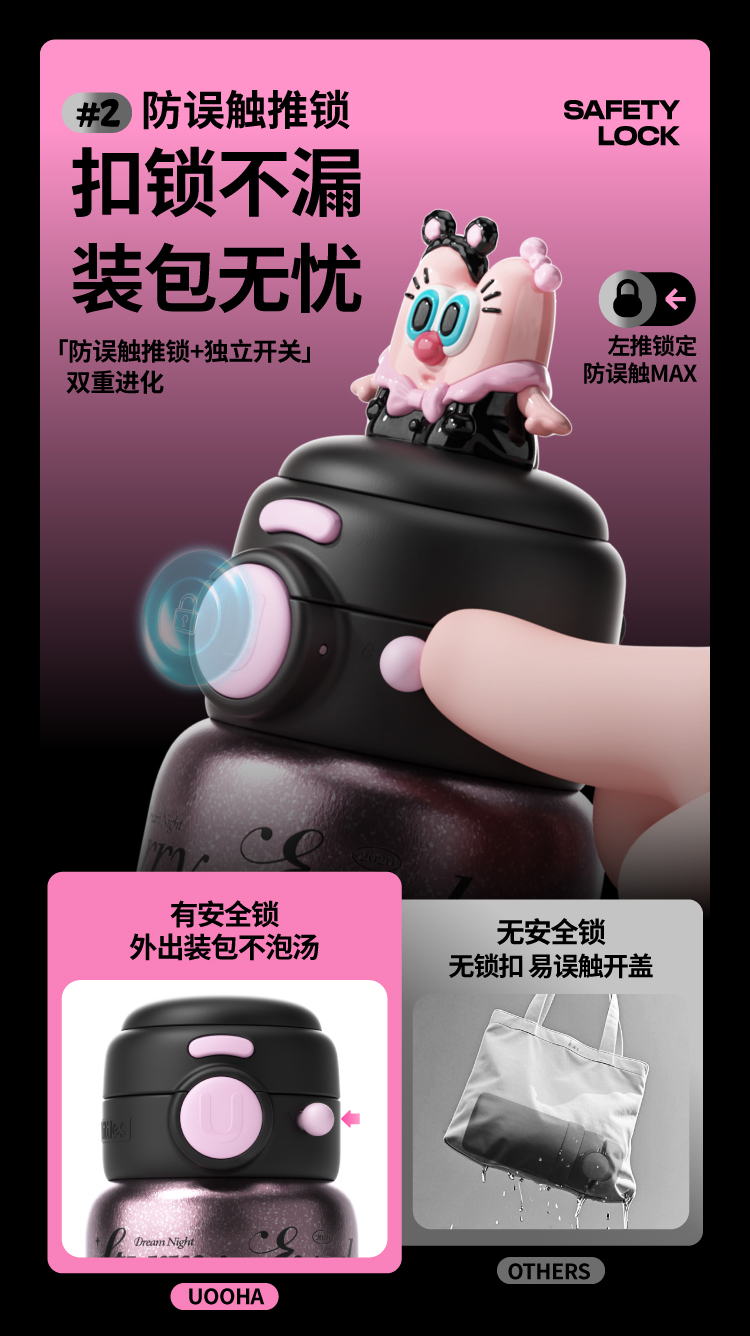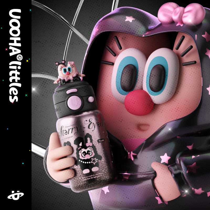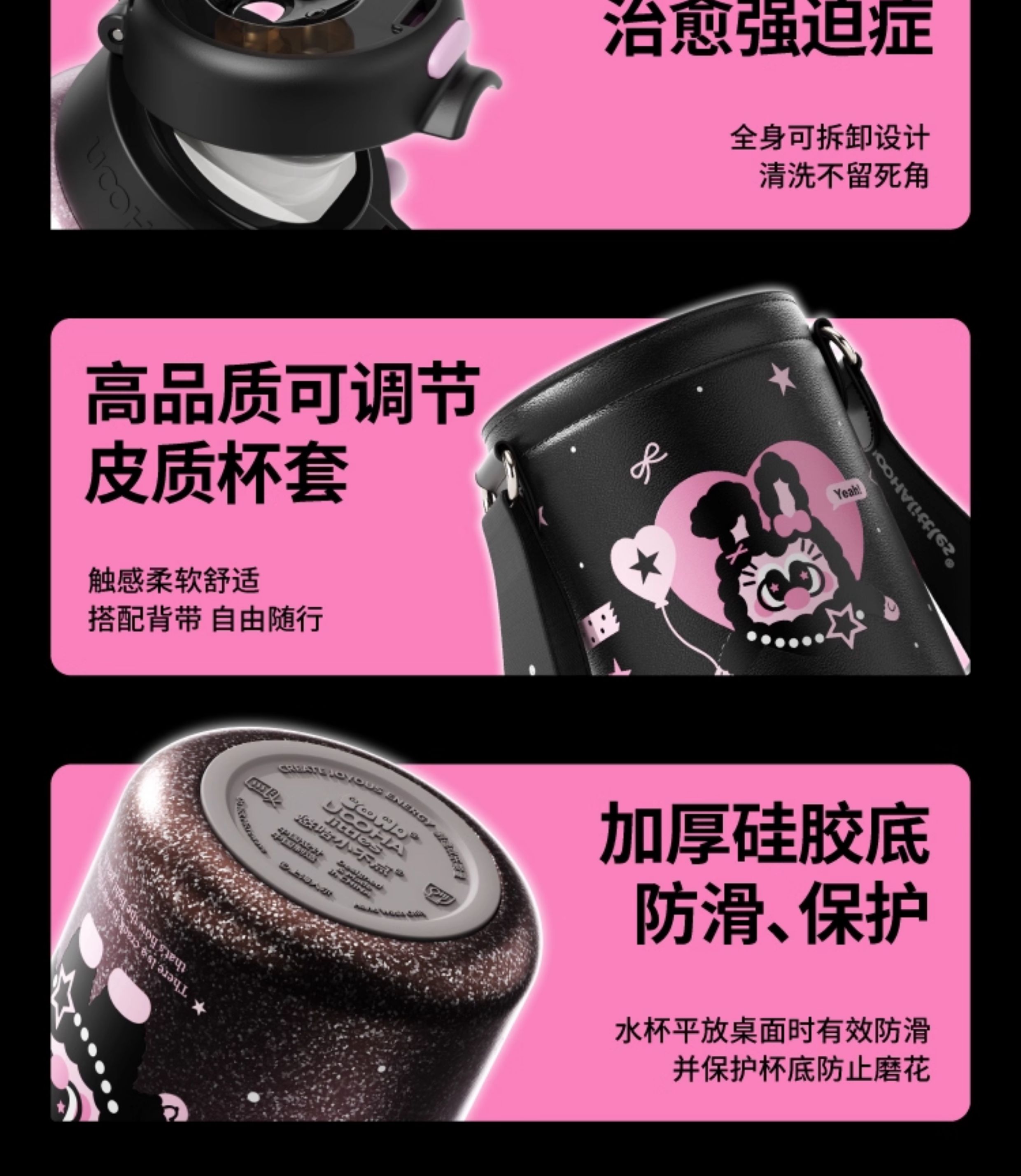 漫游星河-粉色500ml, 萌幻星兔-黑色500ml, 异想涂鸦-蓝色500ml, 满分好苹-红色500ml